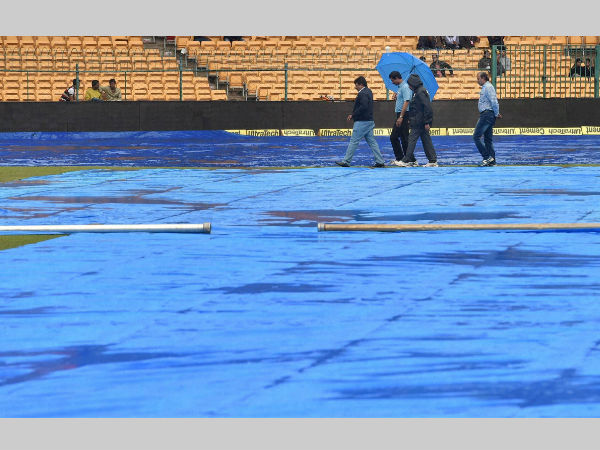 The umpires inspected the ground thrice after a rain-free morning raised hopes for some play. However, the damp conditions coupled with a steady drizzle did not allow the resumption of proceedings at the M Chinnaswamy Stadium.