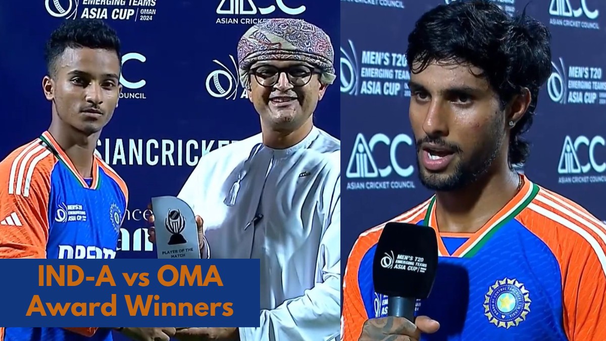 India A vs Oman Award Winners: India A continued their dominance in the Emerging Teams Asia Cup 2024 with a convincing six-wicket victory over Oman in the group stages, securing their spot at the top of Group B.