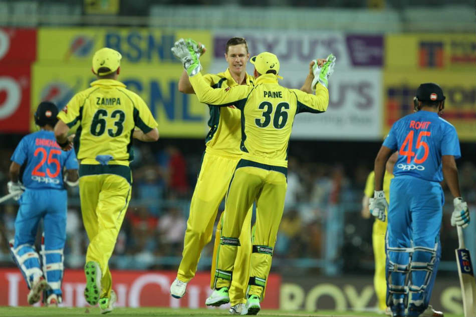 After the losing four early wickets, the hosts couldn't recover from it. None of the Indian batsmen, barring Pandya and Jadhav up to a certain extent, could trouble the Australian bowling attack as it came all guns blazing. All the Indian batsmen failed to score runs and lost their wickets at regular intervals to give Aussies the advantage they needed.