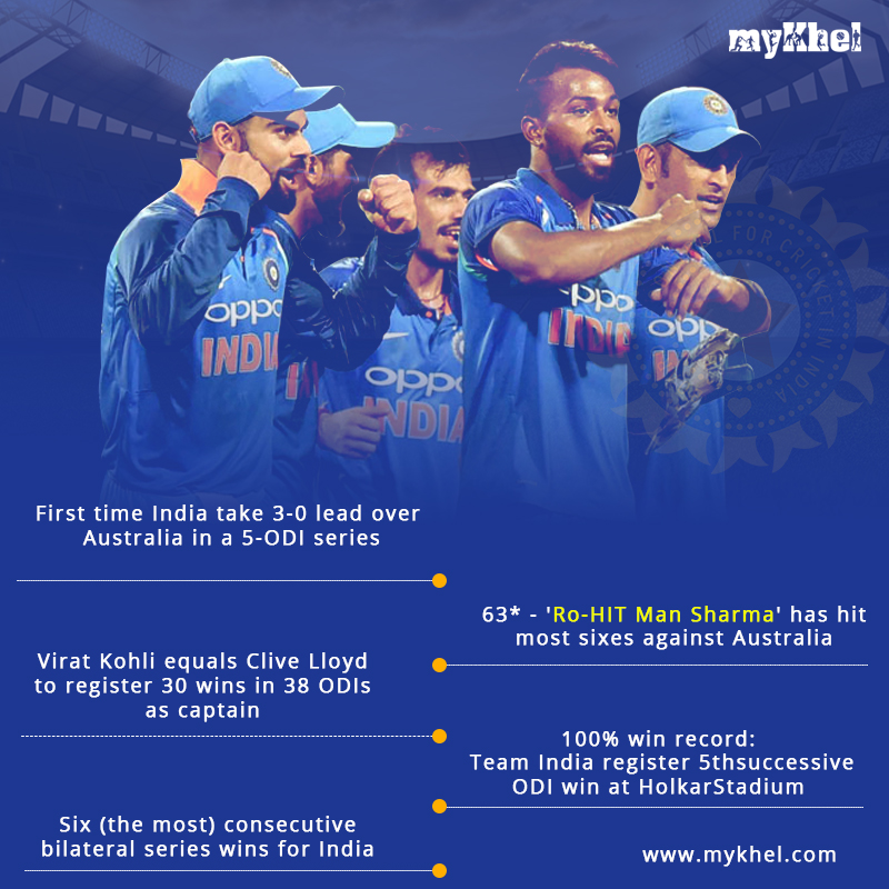 This is the first occasion when India have registered three consecutive wins against Australia in a 5-ODI series.