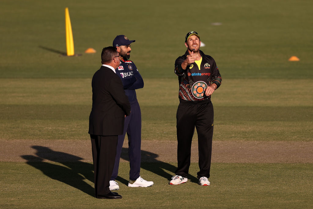Sydney, December 8: India captain Virat Kohli won his third consecutive toss in the three-match T20I series and invited Australia captain Aaron Finch to bat first in the third and final match here on Monday (December 8).