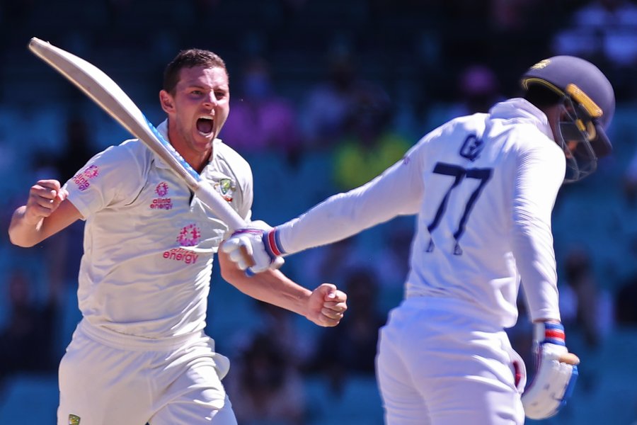 Brought into the attack by captain Tim Paine to bowl his second spell, Hazlewood bowled an away going delivery and the young India batsman find a faint edge off his bat to be caught behind by the wicketkeeper. The batsman went upstairs only to waste the DRS as the ultra-edge confirmed there was a contact between bat and ball.