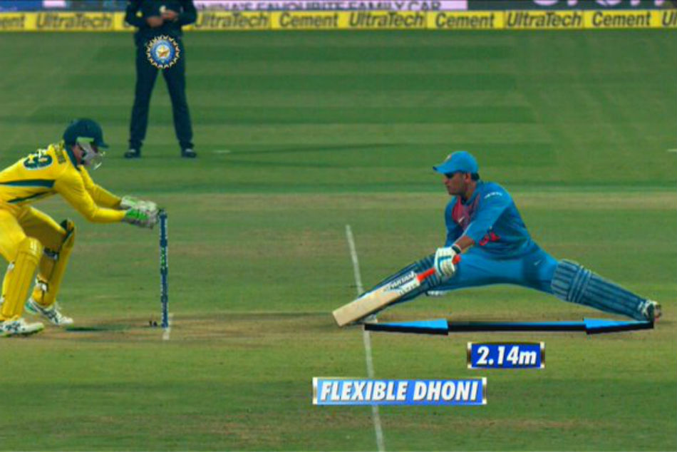 Highlights showed that Dhoni stretched his legs to 2.14 meters and get back into the crease.