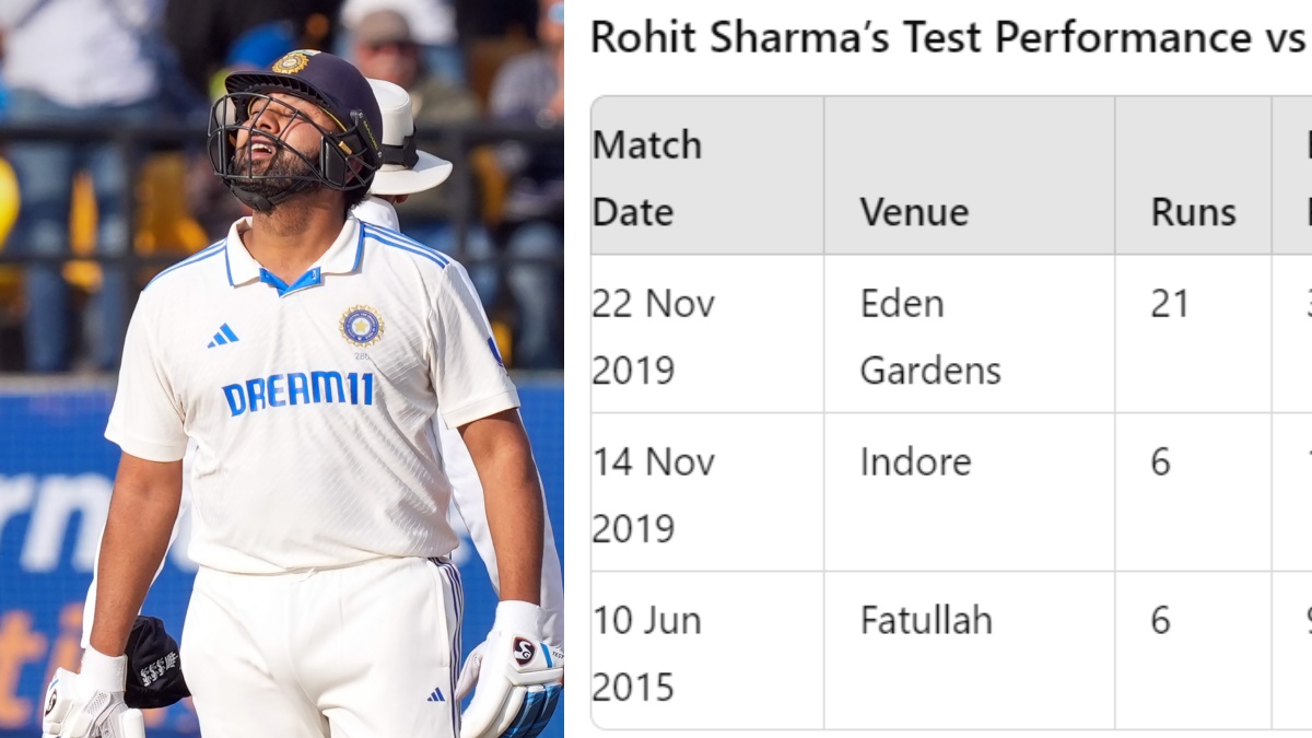 In his three Test matches against Bangladesh, spanning from 2015 to 2019, Rohit has managed only 33 runs from three innings. His highest score in these encounters is a mere 21, with an overall average of 11.00.