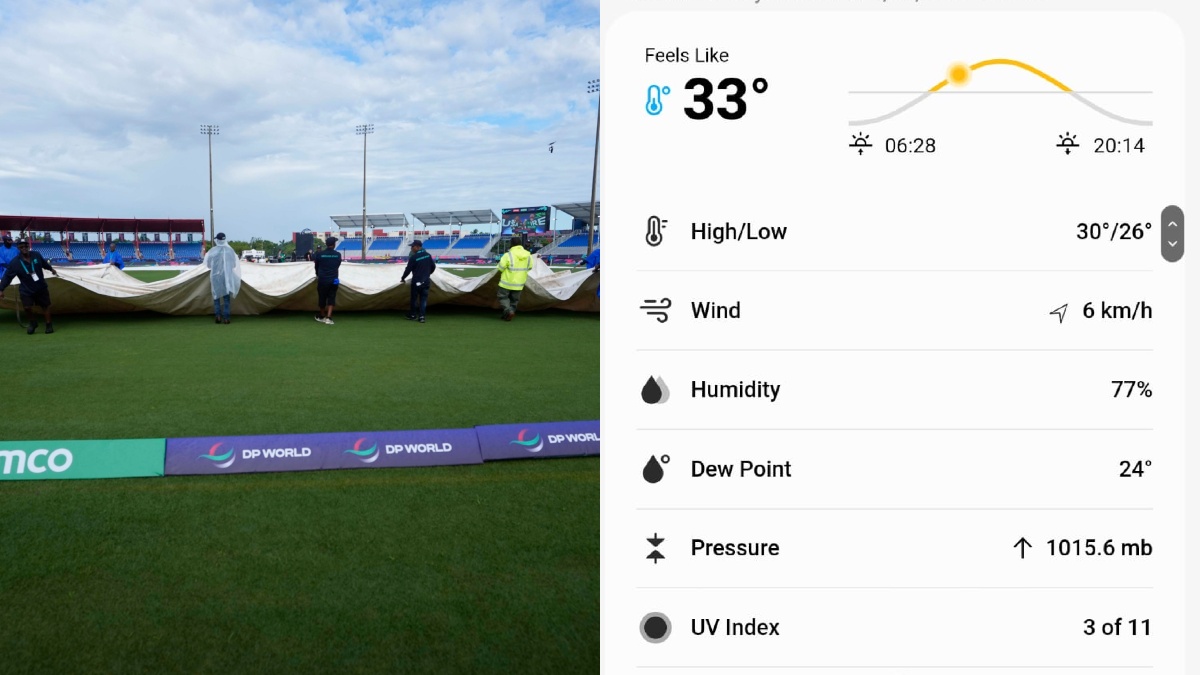 The match will start at 8:00 PM IST. The match is a dead rubber with India already into the Super 8 stages while Canada are already eliminated. However, Indian fans are still keeping a keen eye but the weather may play spoilsport. Find all the Live Weather Updates from the venue below