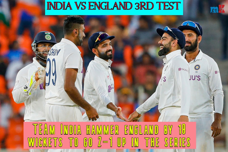 Ahmedabad, Feb 25: India spinners Ravichandran Ashwin and Axar Patel bamboozled England's batting line-up two times in a day as India secured a 10-wicket victory on Thursday (February 25) in the Pink Ball Test inside two days.