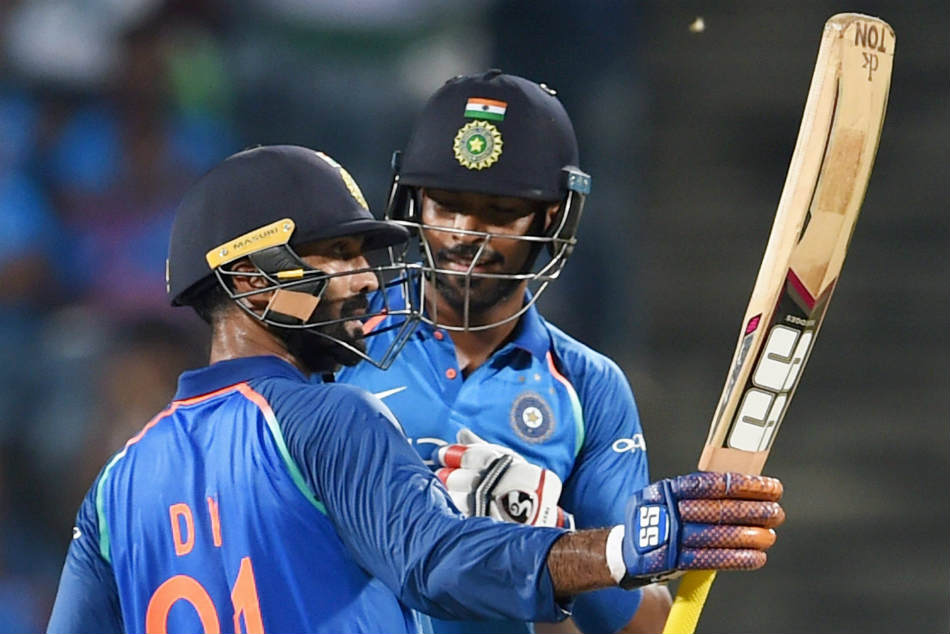 # Karthik and Hardik Pandya (30) forged a 59-run stand to secure the game for their team after Dhawan.