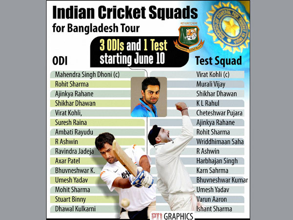 The fitness test will be held on June 6 after the squad assembles here on June 5. It will leave for Dhaka on June 7 to play a one-off Test and three one-day internationals. Virat Kohli will lead India in the Test while Mahendra Singh Dhoni will be captaining the one-day side.