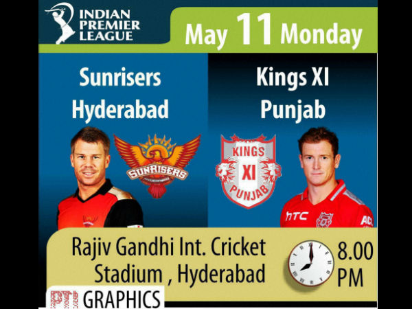 Hyderabad, May 11: Sunrisers Hyderabad (SRH) will be aiming to get back to top-four today when they host last-placed Kings XI Punjab in Match 48 of the Indian Premier League 2015 (IPL 8).