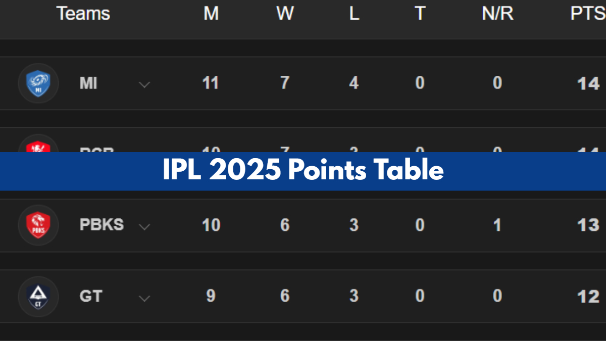 GT also climbed to the second spot, pushing RCB to the third spot on net run rate while both sides are on 14 points. Mumbai Indians continue to be in the lead, also on a superior net run rate. Let's take a look at the updated IPL 2025 Points Table below: