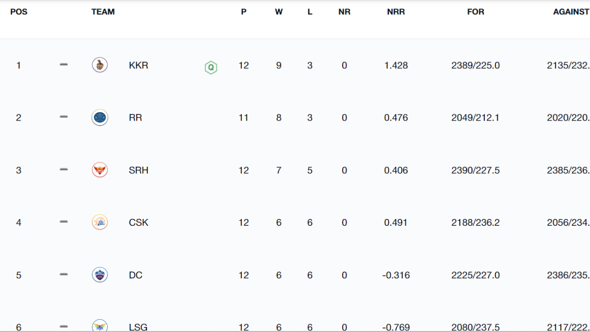 Last updated after KKR vs MI match on May 11