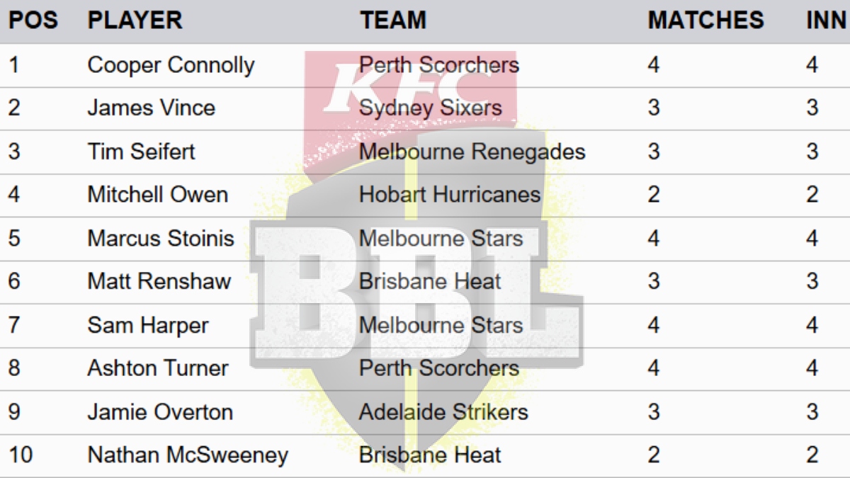 Top 5 run-scorers for Brisbane Heats