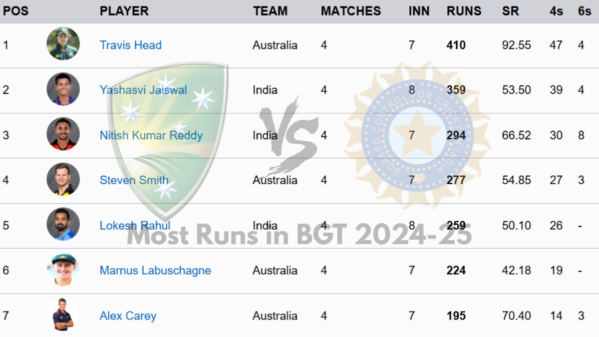 Most Runs in Border Gavaskar Trophy 2024-25 - Updated on December 31: The Melbourne Test ended on Day 5 with Australia posting an 186-run win following a dramatic collapse of India. The inning came after Yashasvi Jaiswal scored 84, pushing him further up the highest run-scorer.