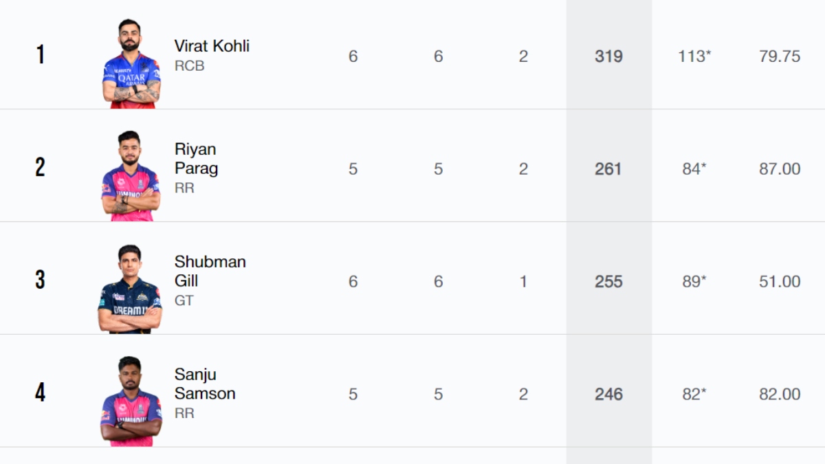 | Virat Kohli (RCB) | 319 | 113* | 5 | 29 | 12 |