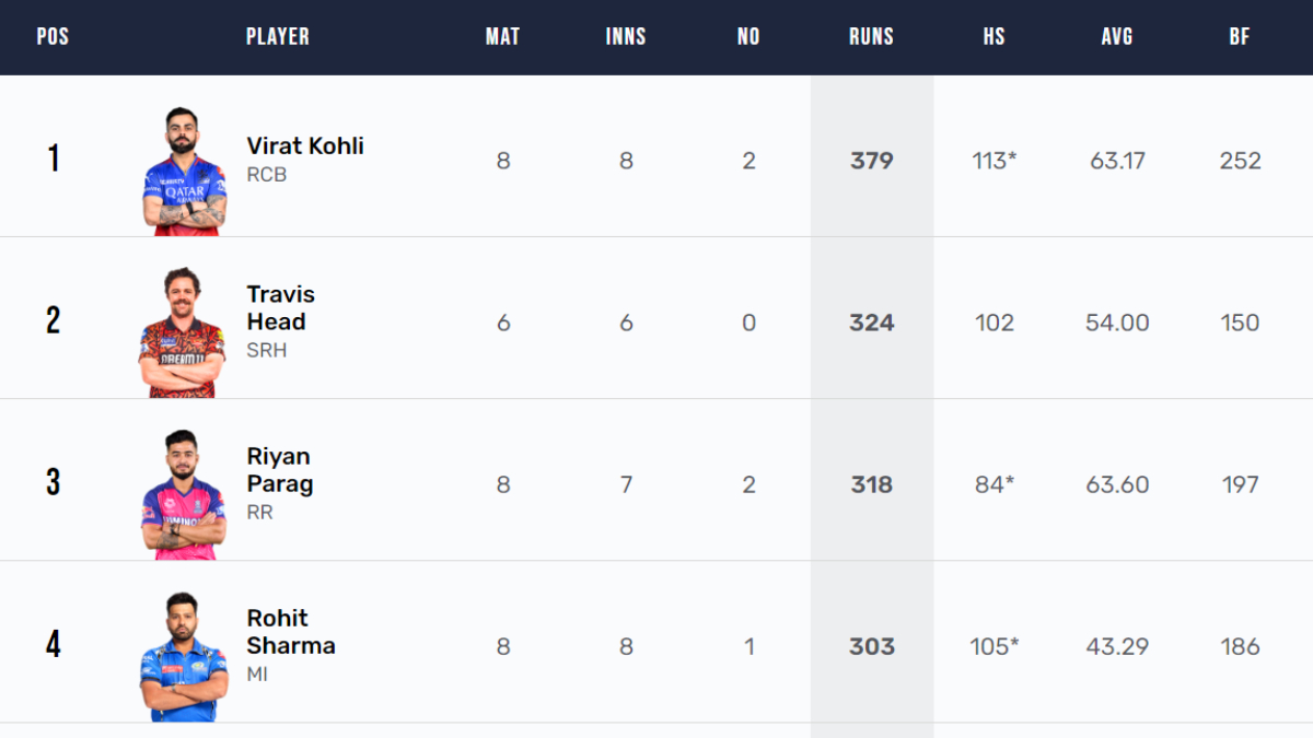 However, the likes of Rohit Sharma, Riyan Parag and Sanju Samson are in action on Monday and a big knock by any one of them may finally lead to a change. MyKhel takes a look at how their performances affect the Most Runs In the IPL 2024 list.