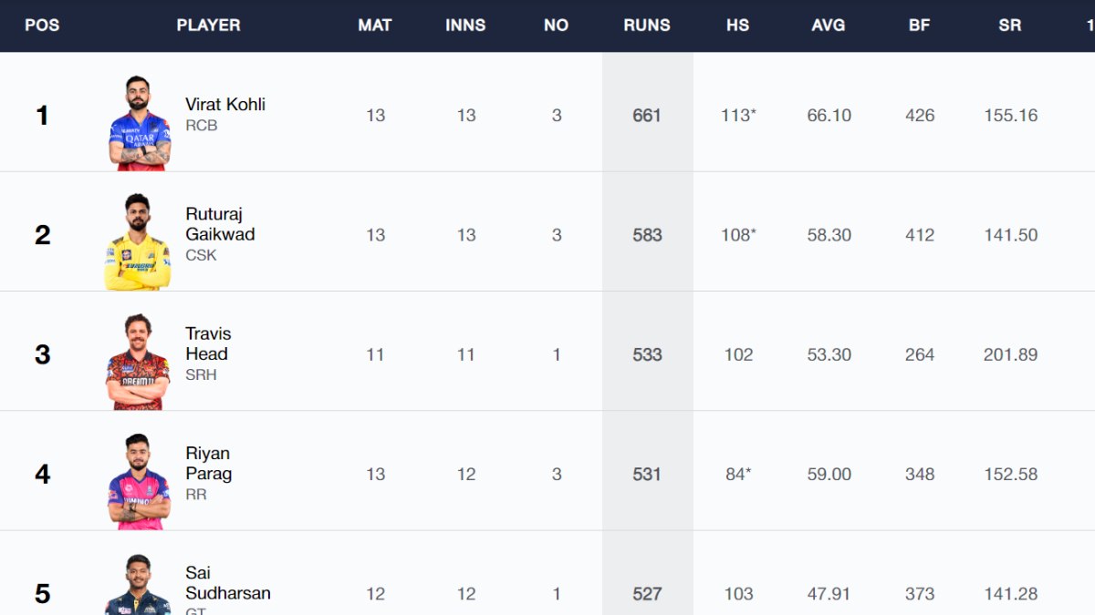 Orange Cap in IPL 2024 - After the last league match: it's the leader vs contender as Virat Kohli and Ruturaj Gaikwad face off for the top spot in the RCB vs CSK match on May 18 (Saturday) at the M Chinnaswamy Stadium.