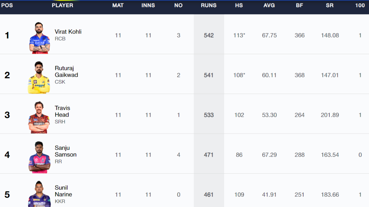 Orange Cap Race in IPL 2024 - Updated After KKR vs MI: Virat Kohli will resume as the Orange Cap leader by a run on the day and will have an opportunity to extend his lead as his Royal Challengers Bangalore take on Punjab Kings in Dharamshala on May 9. Also read: Most Wickets in IPL 2024 | Most Sixes | IPL Points Table