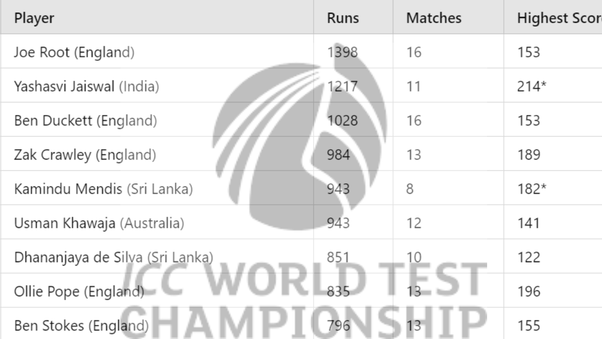 Most Runs in ICC Test Championship 2023-25: Yashasvi Jaiswal cut down his gap to leading run-scorer Joe Root with back-to-back half-centuries for India against Bangladesh in the Kanpur Test. Also read: WTC Points Table 2023-25 Updated after India beat Bangladesh