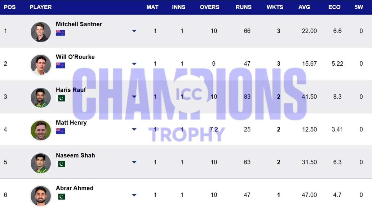 His teammates Harshit Rana and Axar Patel joined the race too with three and two wickets respectively. Let's take a look at how their performances impacted the highest wicket-taker list of Champions Trophy 2025: