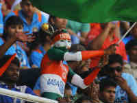 A number of crazy fans were seen blowing vuvuzelas, popularised during the 2010 FIFA World Cup in South Africa, while getting painted the Indian tricolour on their faces and bodies near Churchgate station. The team India and bleed blue jerseys were much sought after stuff.