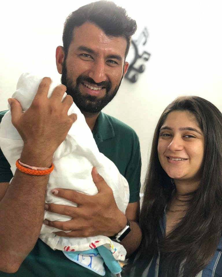 Pujara tweeted the photo of himself holding the baby along with his wife.