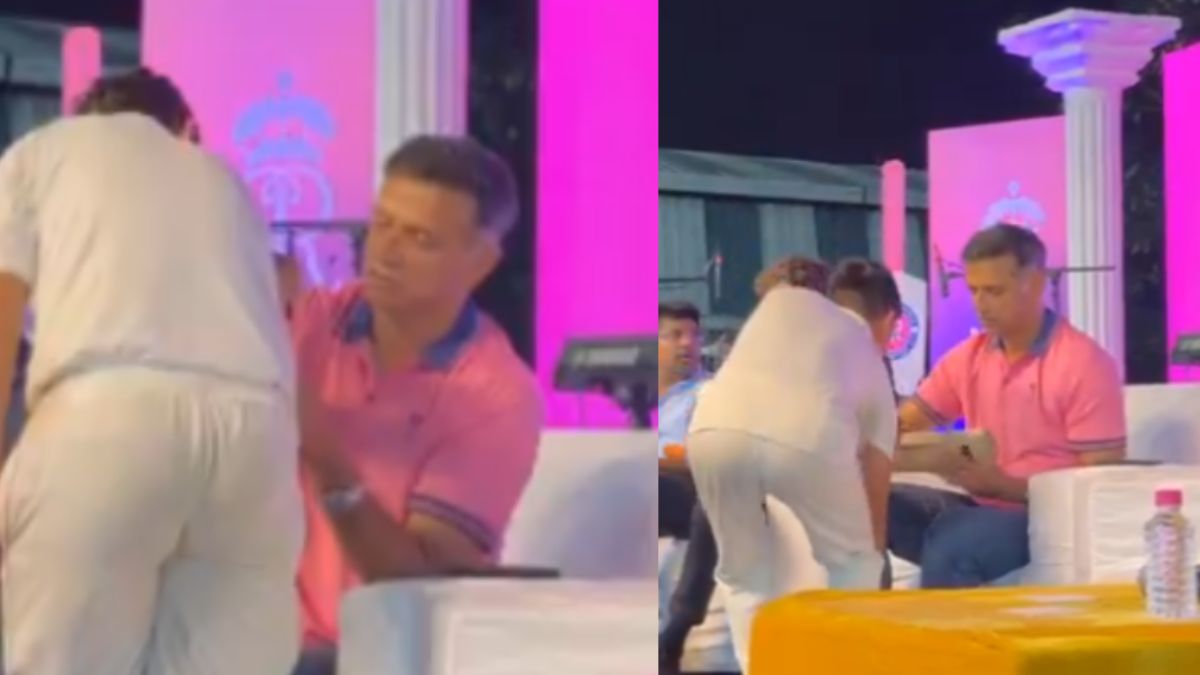 A video has been shared by the Rajasthan Royals through their X handle which has broken the internet. In the video, it can be seen Rahul Dravid at the event, where many kids approach him and touch his feet for blessing. Dravid, being the gem of a person he is, can be seen signing their bats and jerseys and blessing them. The children were extremely ecstatic after meeting their hero at such close proximity and getting a lifetime memory from him.