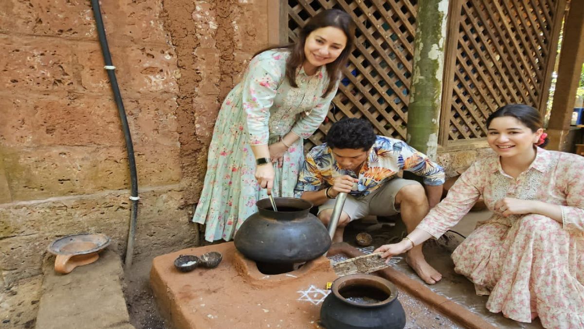 The Legend shared an image of him cooking in a clay pot as his wife Mrs Anjali Tendulkar and daughter Sara Tendulkar were also captured.