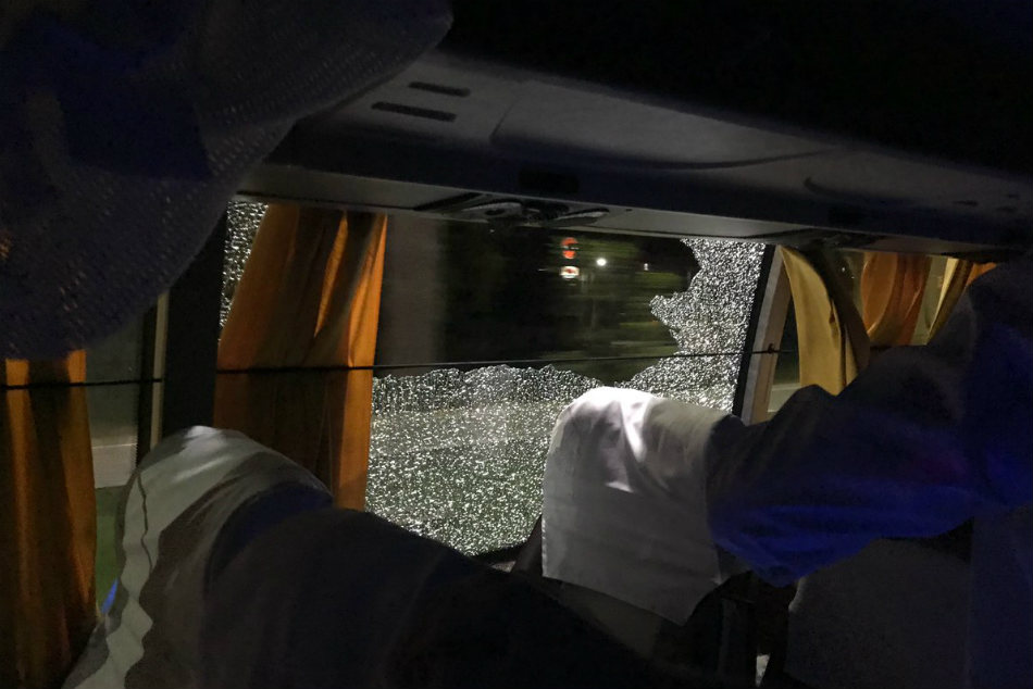 Finch shared the image and wrote on his Twitter handle: "Pretty scary having a rock thrown through the team bus window on the way back to the hotel!!"