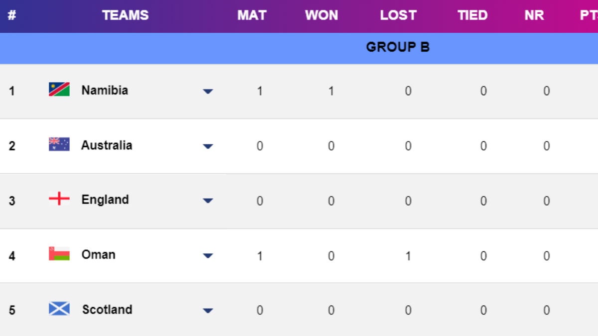 Both the sides share a point each after Namibia and Oman played the opening Group B match the other day. Let's take a look at how the group looks like after the last match.