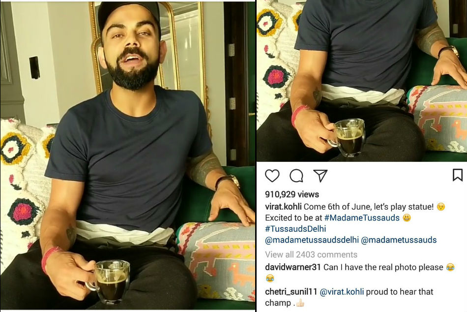 Kohli captioned the video, "Come 6th of June, let's play statue! 😉 Excited to be at #MadameTussauds 😃 #TussaudsDelhi @madametussaudsdelhi @madametussauds".