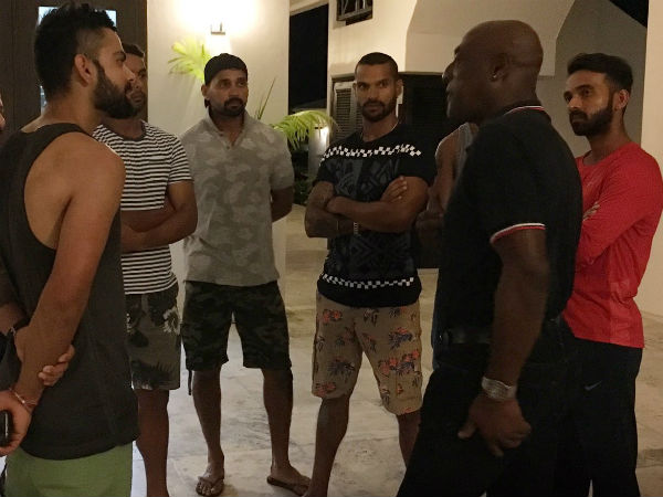 Antigua, July 19: Former West Indies legend Sir Vivian Richards met the Indian cricket team, that is on the Caribbean tour to play Test series, here and spent some quality time with them.
