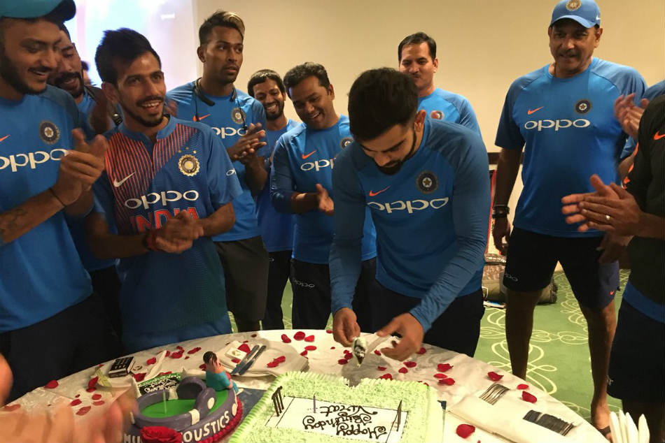 The players seemed to get over the defeat against New Zealand in the second T20I in Rajkot and celebrated the birthday of their skipper. Kohli played a knock of 65 runs as India chased a massive 197-run target but it vain.
