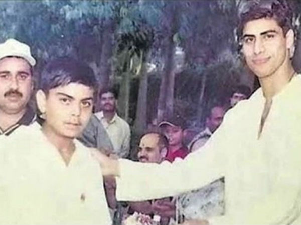 The photograph shows Kohli in his teenage who is receiving a trophy from Nehra.