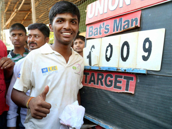 A cricket equipment kit was gifted to him on the occasion. The 15-year-old, playing for KC Gandhi Higher Secondary School, reached the gigantic score of 1000 in just 323 deliveries with a jaw-dropping strike rate of 312.38 in the game against Arya Gurukul in the Bhandary Trophy inter-school tournament organised by the Mumbai Cricket Association (MCA).