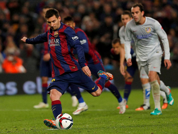 Barcelona, Jan 22: Lionel Messi's goal with five minutes of regulation time left gave FC Barcelona a 1-0 victory over La Liga holders Atletico Madrid in the first leg of their Copa del Rey quarterfinal clash.