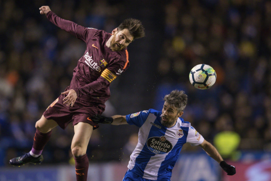 The Argentinian star scored a brilliant 30th La Liga hat-trick as Barca survived a scare to beat Deportivo La Coruna 4-2, wrapping up the club's 25th league title with four matches to spare and keeping their hopes of an unbeaten season alive.