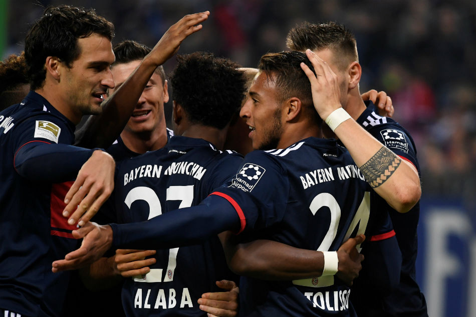 Corentin Tolisso fired in the winner in the 52nd minute after some sloppy defending from ten-man Hamburg to lift them to 20 points, as many as Dortmund who let a two-goal lead slip to draw 2-2 at Eintracht Frankfurt.