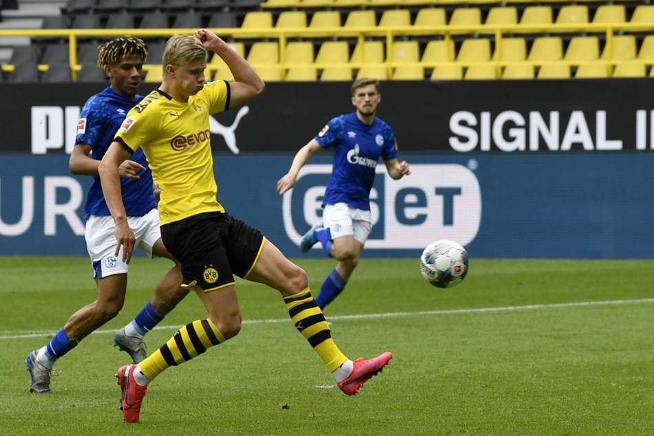 Haaland picked up where he left off by scoring the league's first goal, and his 13th in 12 appearances for Dortmund, following a two-month suspension in a Revierderby played out in an empty Signal Iduna Park.