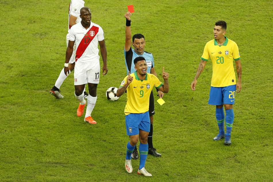 Jesus scored and provided an assist before being sent off in Brazil's 3-1 win over Peru at the Maracana on July 7.