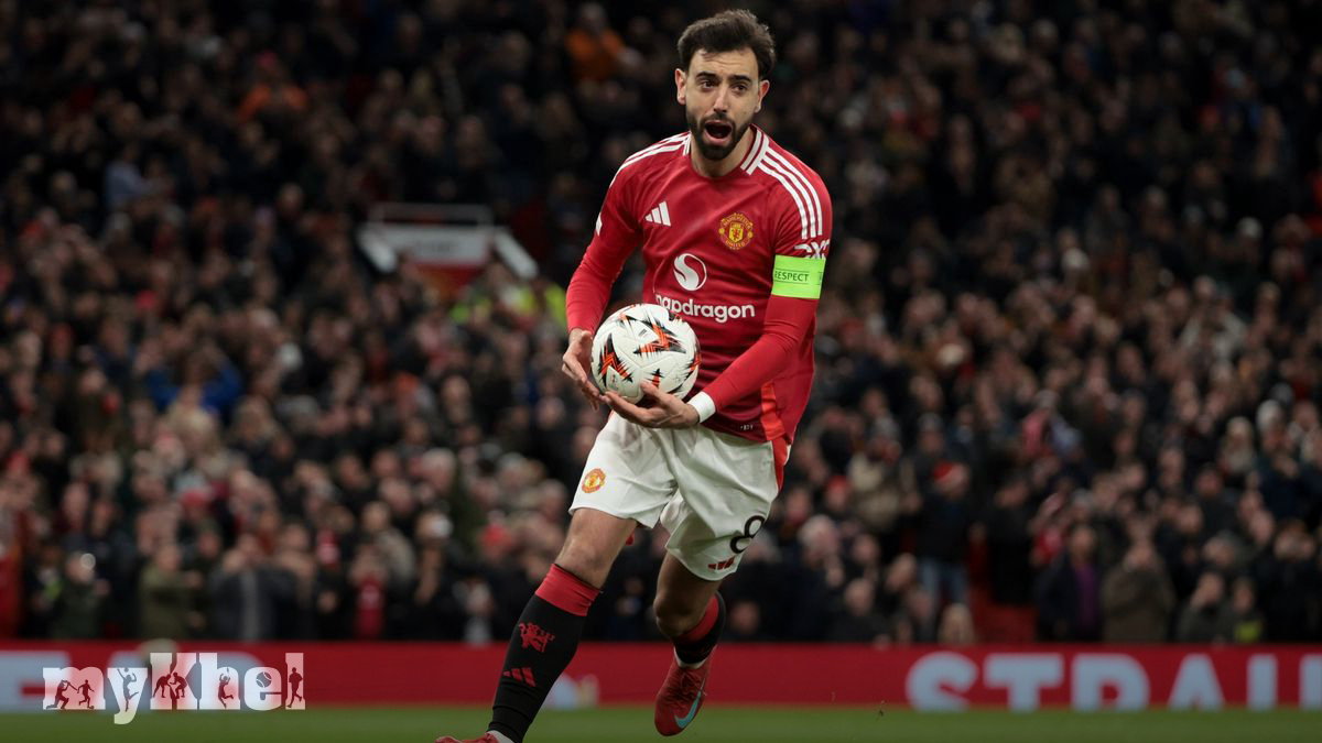 Manchester United's head coach praised Bruno Fernandes as the ideal captain following his hat-trick in a 4-1 win over Real Sociedad. This victory in the Europa League round of 16 secured United's spot in the quarter-finals. Despite initially trailing due to Mikel Oyarzabal's early penalty, Diogo Dalot sealed the win with a stoppage-time goal. United will now face Lyon in the next round.