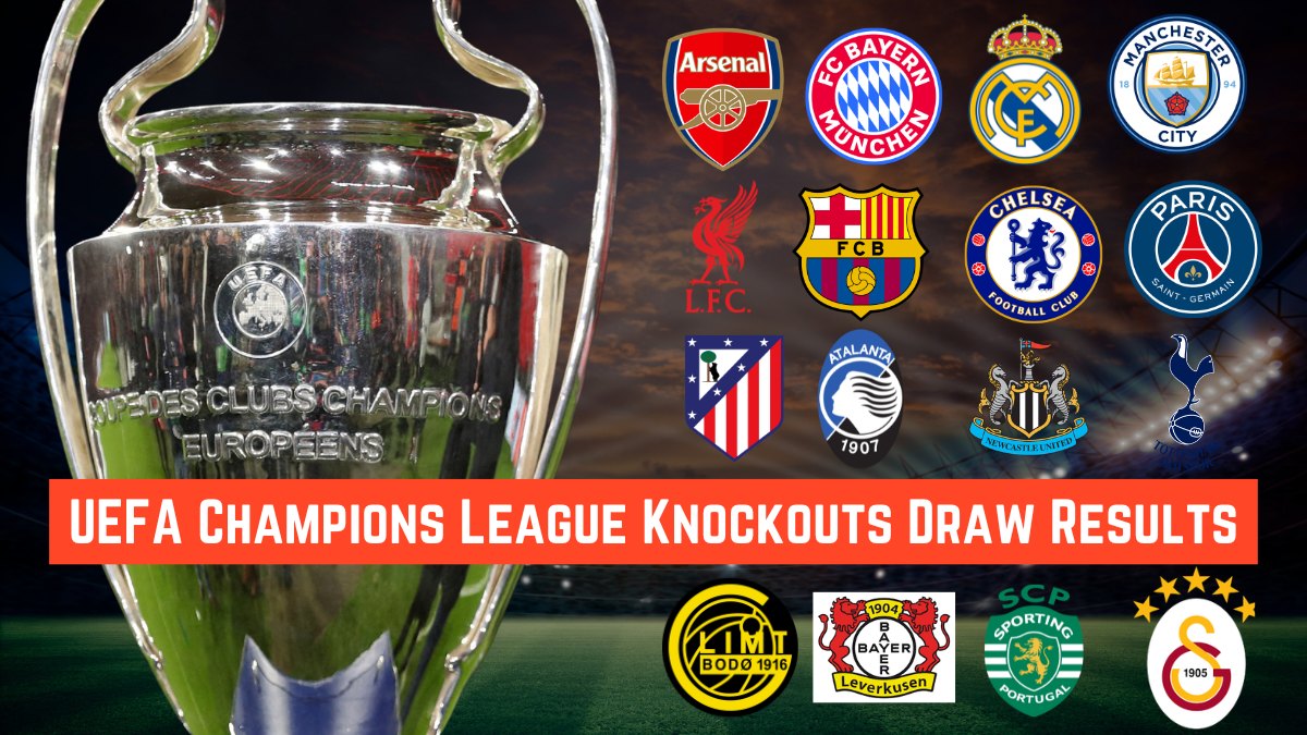 The 2025/26 UEFA Champions League knockout playoffs produced these winners advancing to the round of 16: Paris Saint-Germain (beat Monaco 5-4 agg), Galatasaray (7-5 vs Juventus), Real Madrid (3-1 vs Benfica), Atalanta (4-3 vs Borussia Dortmund), Newcastle United (9-3 vs Qarabağ), Atlético Madrid (7-4 vs Club Brugge), Bodø/Glimt (5-2 vs Inter Milan), Bayer Leverkusen (2-0 vs Olympiacos). They join seeded top-eight Arsenal, Bayern Munich, Liverpool, Tottenham, Barcelona, Chelsea, Sporting CP, Manchester City for the February 27 draw.
