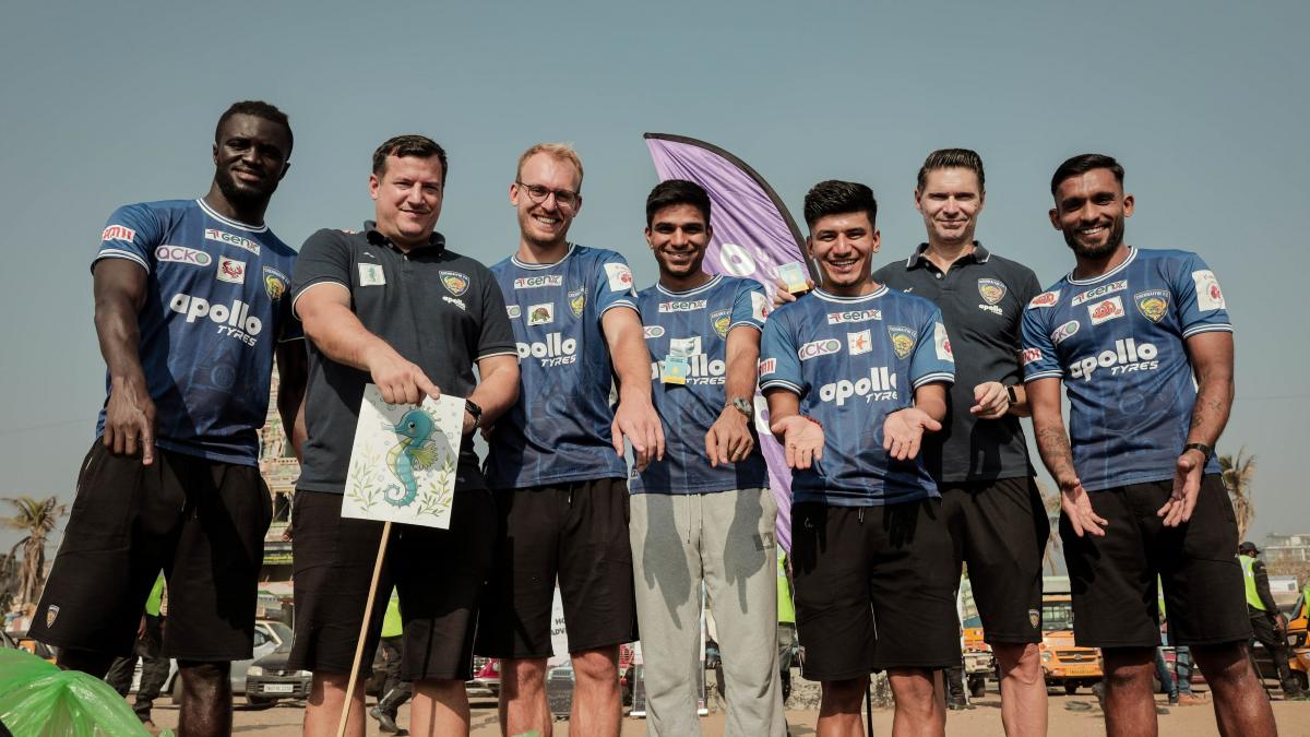 ISL club Chennaiyin FC conducted a beach cleaning drive at the Marina Beach on Sunday - a joint initiative with the club's principal sponsor Apollo Tyres.