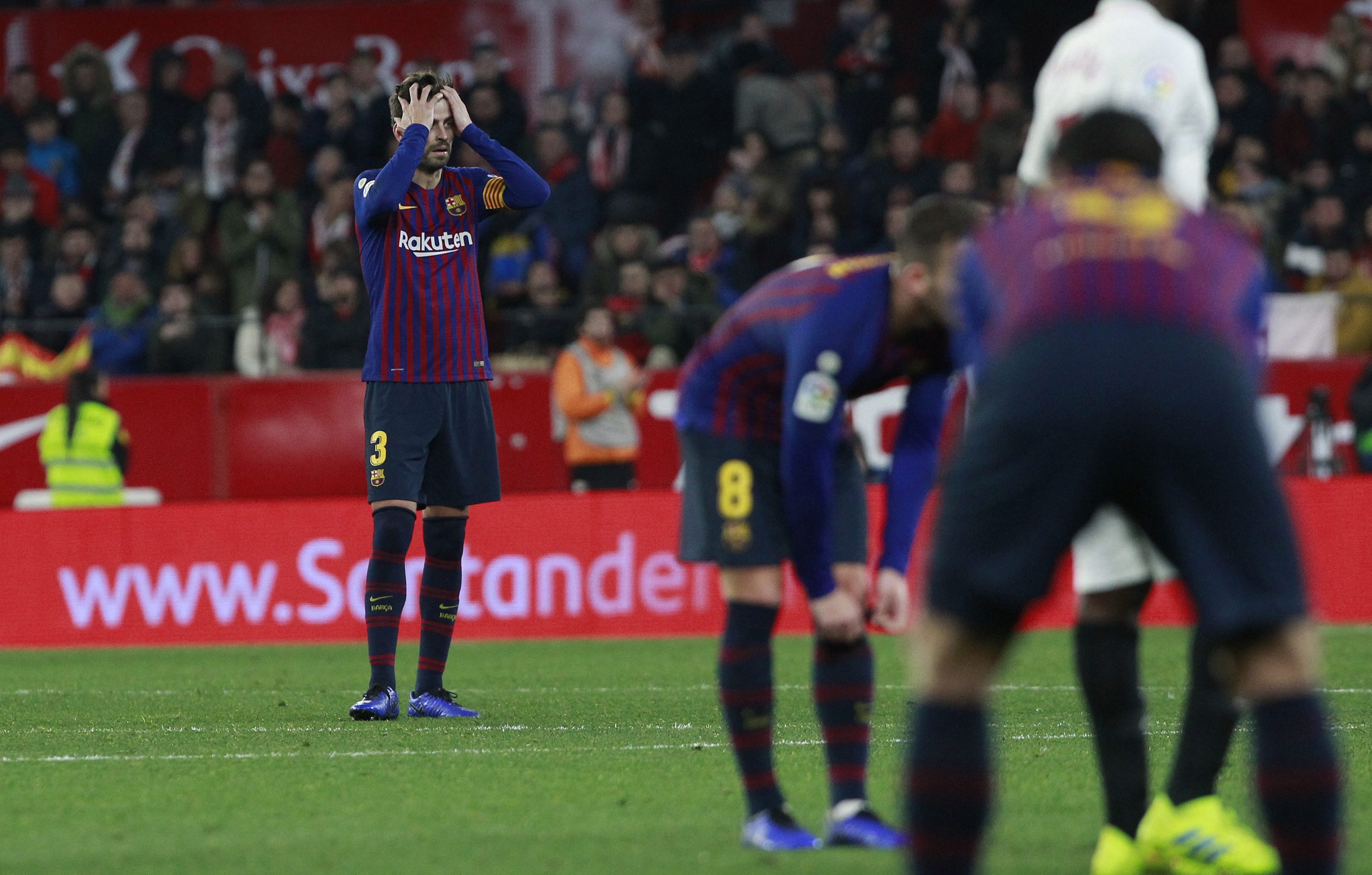 After an even first 45 minutes, strikes from Pablo Sarabia and Wissam Ben Yedder stunned the Catalans and left them needing a second-leg comeback at the Camp Nou for the second consecutive round in the competition.
