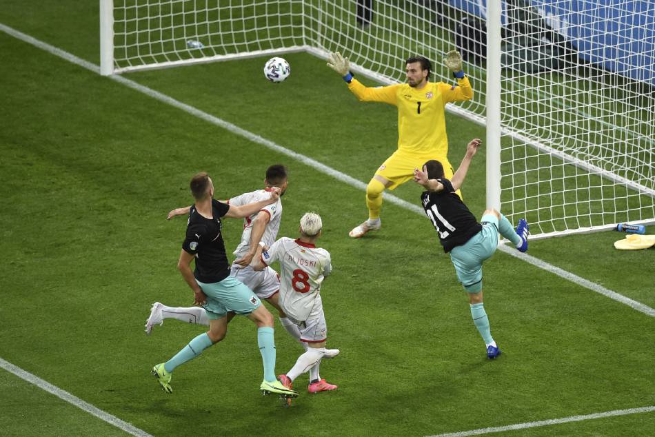 Stefan Lainer gave Austria an early lead in the 17th minute before Goran Pandev became the second oldest scorer in the competition's history when he capitalised on an unexpected opportunity to tap in an equaliser in the 27th minute.