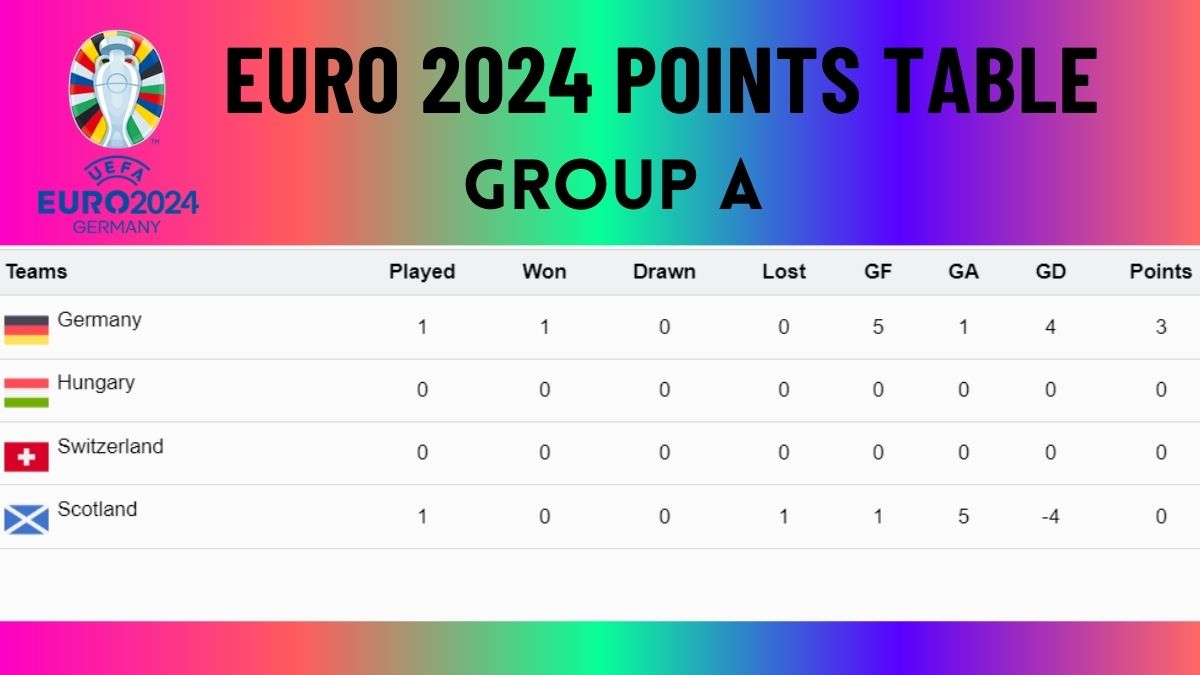 Euro 2024 Points Table Group A: The Euro 2024 has started as hosts Germany took on Scotland in the opener. Germany, Scotland, Hungary and Switzerland are slotted in Group A.
