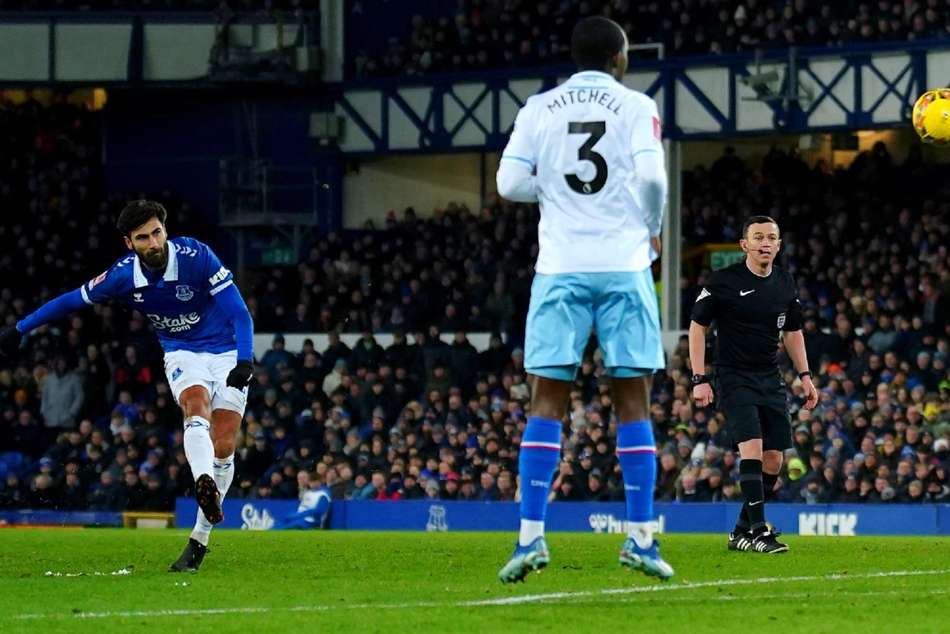 A spectacular free-kick from Andre Gomes fired Everton into the fourth round of the FA Cup following a 1-0 replay win over Crystal Palace while Nottingham Forest needed extra time to see off League One Blackpool.