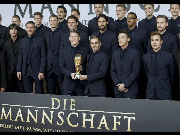 Players, coaching staff, football emissaries and invited guests gathered at glitzy Potsdamer Platz in Berlin yesterday to see "Die Mannschaft" (The Team), a film that reveals some of the more intimate details from the side's tournament success.
