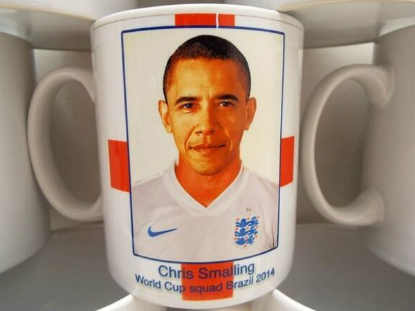 The mug has a picture of Obama with the text below the image which reads, "Chris Smalling World Cup squad Brazil 2014".
