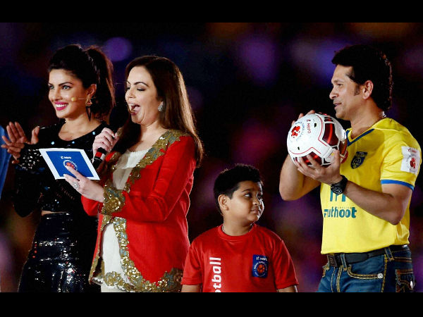 Touching the hearts of the football-loving crowd, chairperson of IMG-Reliance and founding Chairperson of Football Sports Development (ISL) Nita Ambani formally declared open the ISL. "Ami Indian Super League er Subho Suchona Korchi (I declare the auspicious opening of ISL) - I formally declare the Indian Super League open," she said surrounded a rare amalgamation of Bollywood and cricket and world football celebrities who represented the eight franchises. (Also read: Kolkata win opener)