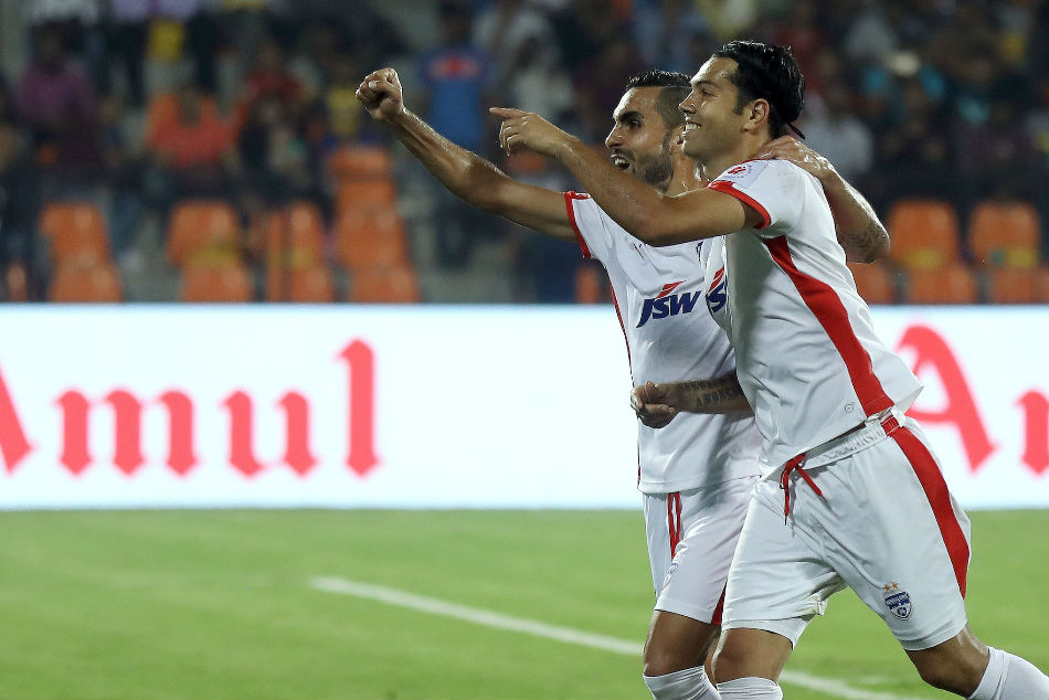 A lot had been made of Bengaluru's dry spell of scoring from set-pieces and it took a fine bit of trickery to dispel the doubts. Earning a free kick on the edge of the box, Chhetri made a decoy run to the right in the box while Miku rolled a firm take in on the left to make it 3-0 and go level with FC Goa's Ferran Corominas atop the ISL scorer's chart.
